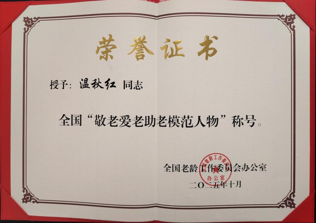 我校工会离退处温秋红 荣获全国敬老爱老助老模范人物