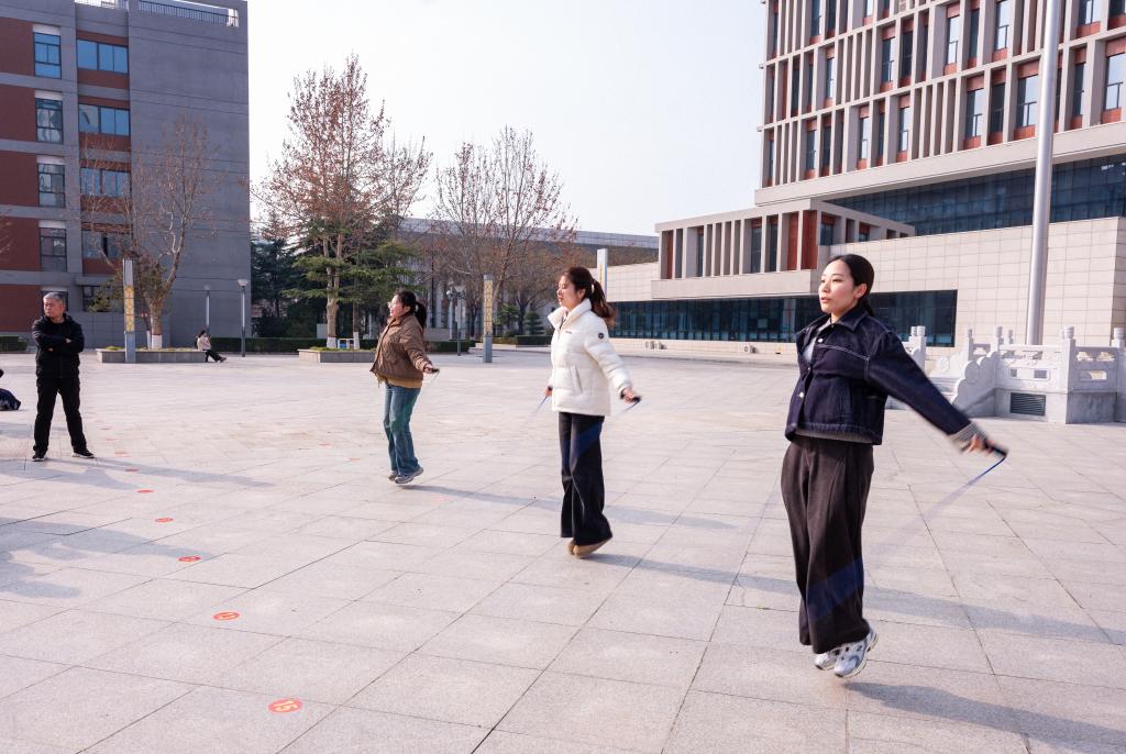 随后开展的跳绳比赛活力满满、趣味十足。参赛教职工精神抖擞、身姿轻盈,彩绳飞舞、脚步轻快,呐喊声与欢笑声此起彼伏,将现场氛围推向高潮。大家在运动中释放压力、增进情谊,尽显巾帼活力与团队风采。其中,网信中心李晓老师表现突出,以一分钟155 次的优异成绩斩获跳绳比赛第一名,充分展现了昂扬向上、奋勇争先的巾帼风采。