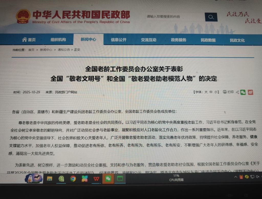 未来,她将珍惜荣誉,再接再厉,用心用情做好本职工作,为弘扬中华民族优秀传统美德,积极营造敬老爱老助老文明风尚贡献一份力量。(撰稿:齐晓娟审核:杨瑞侠杨金忠)